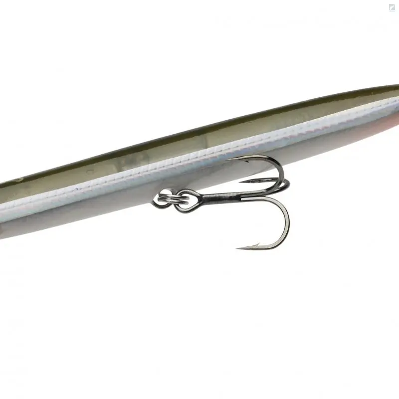 Savage Gear 3D Sandeel Pencil is based on a 3D Scan of a Real Sandeel. Swims with a seducing slim S-curve, head slight up. On the stop, the lure flutters and rolls backwards – triggering hard strikes. The lure has a built-in rattle chamber, that sends out a loud clicking sound, when twitched. Extreme long cast design for amazing coverage. Supplied with both a single and a treble hook, with the option to add the treble hook to the belly as well. Perfect for seatrout fishing.