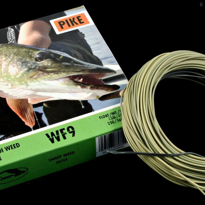 Eumer’s new pike fly line made by Airflo. The basic idea of the fly line is to get the fly under the surface as fast as possible when the fly hits the water. Especially in windy conditions and strong current it’s essential to get your fly in the right depth fast. Head’s length is 13 meters. First 2 meters are made of sink 4 density, 8 meters of belly fast inter and the rear taper and running line are floating.
