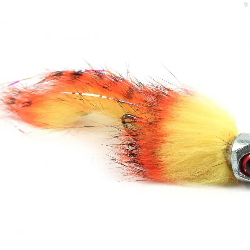 Eumer Spintube Natural is a tube fly for spinning and casting gear. Use for trouts, perch and zander (pike-perch) fishing. Eumer Spintube Super Natural have aggressive colours which work for active fish. Spintube Super Natural is particularly suitable for still water and river fishing. In current you can fish it near the bottom by swinging it across the river. In still waters, it can be fished with jig fishing techniques. When using Spintube Super Natural, the hook is turned pointing upwards and thus snagging the bottom can be avoided. Super Natural is sinking with lead free design, the weight is achieved by using a brass body. The handmade Spintube Super Natural is finished with 3D eyes giving the product even better look.