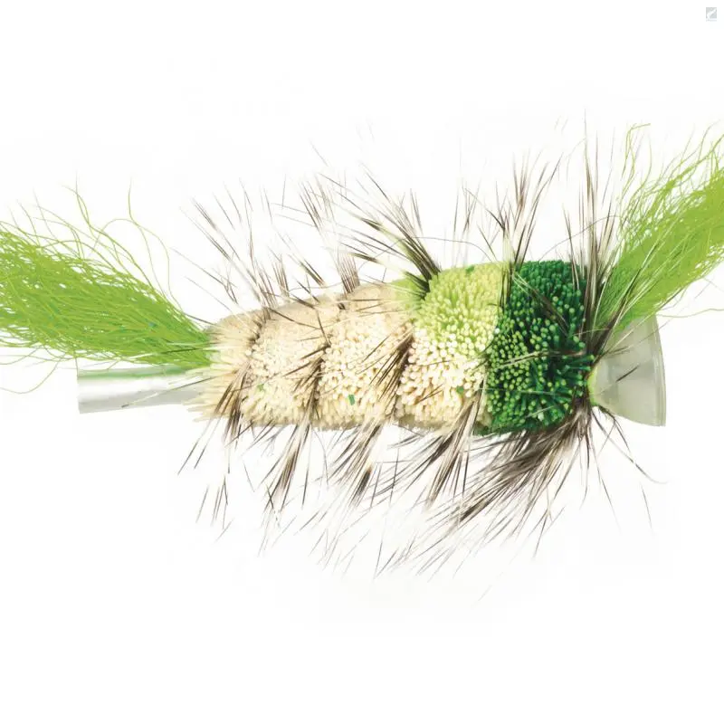 The green bomber is Mikael’s favourite. It has given so many great fish. It sure has got its special place in surface fly boxes. In fact, Mikael would say that together with the black simple fly it’s the one he prefers for most of his surface fishing. Fish them from small to medium size, meaning from 2-4 cm. Always try to use a light single hook.