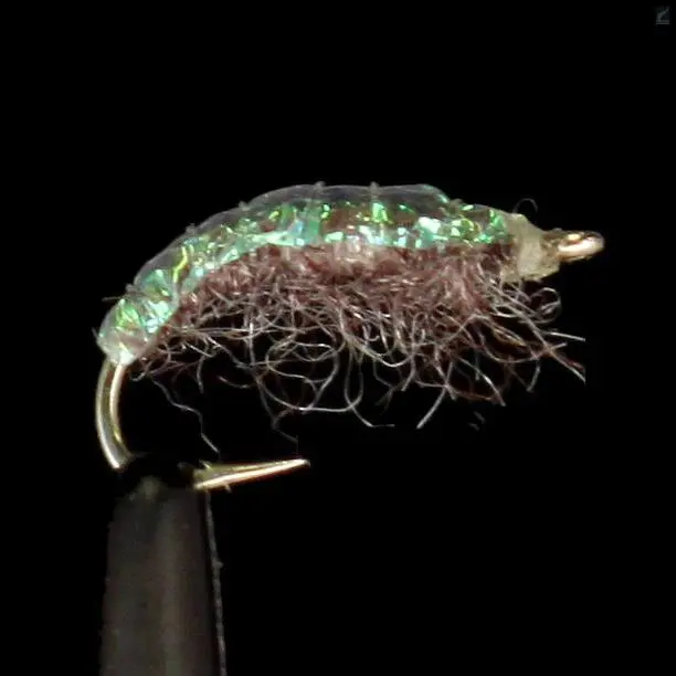 Flashback Shrimp är bunden på en böjd krok och imiterar en räka. Det finns olika räksorter både i söta som salta vatten och de fungerar som en av de viktigaste näringarna för alla ädla fiskar från öring till sik. Flugans rygg är bunden av ett material som reflekterar ljus vilket får den att synas i grumligt vatten och i mörker.