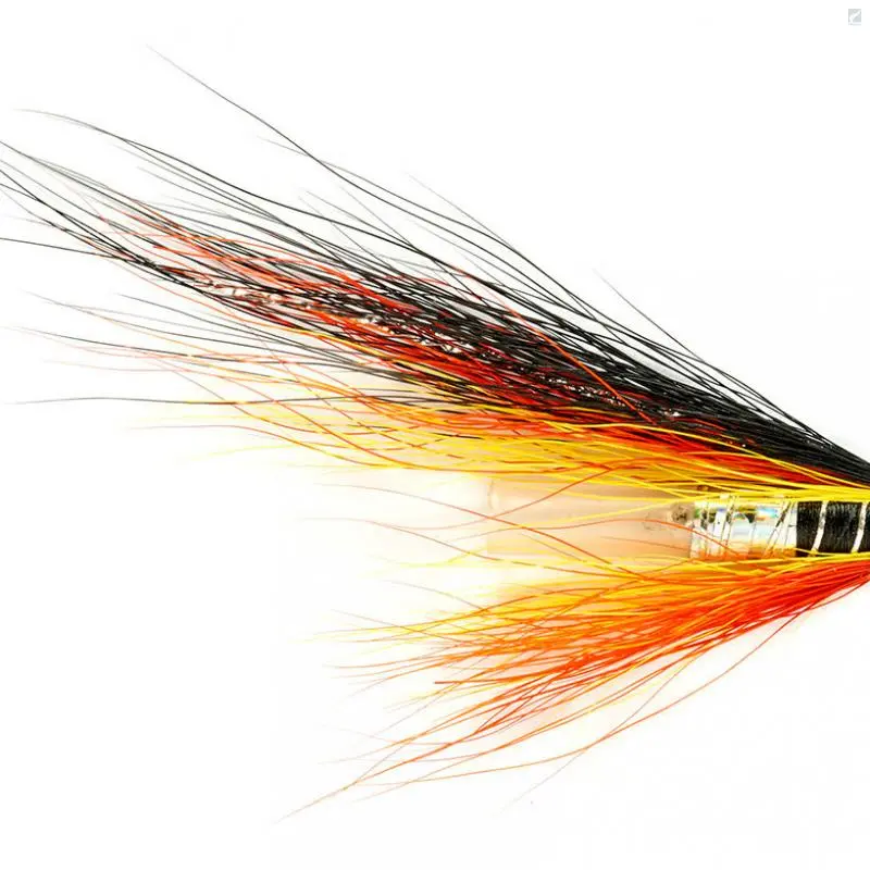 Hitch Cascade är som bäst på små laxälvar. Flugans vinge kombinerar svart, rött och gult och den fungerar i de flesta förhållanden.
