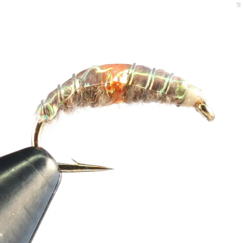 The pearl back on this shrimp adds to its visibility when fished on the bottom or around weed beds. Use when targeting fish on both still and running water that are feeding on freshwater shrimps.