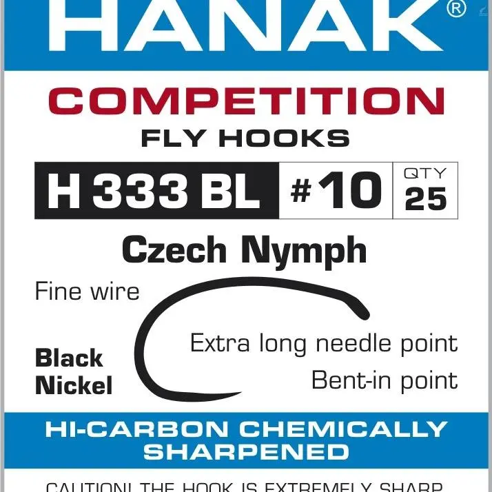 Hanak H333BL Czech Nymph is barbless and universal hook for buzzers and larvae patterns. Curved shank gives natural look for the fly. Fine wire creates light flies.