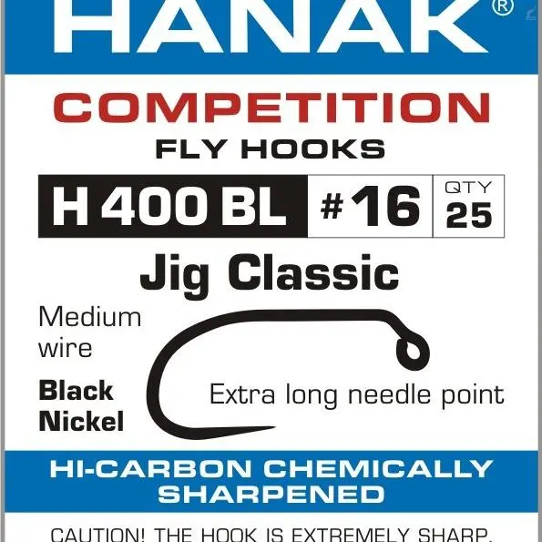Hanak H400BL Jig Classic is barbless unweighted jig hook for use in combination with various beads. Use for nymphs and mini leeches.