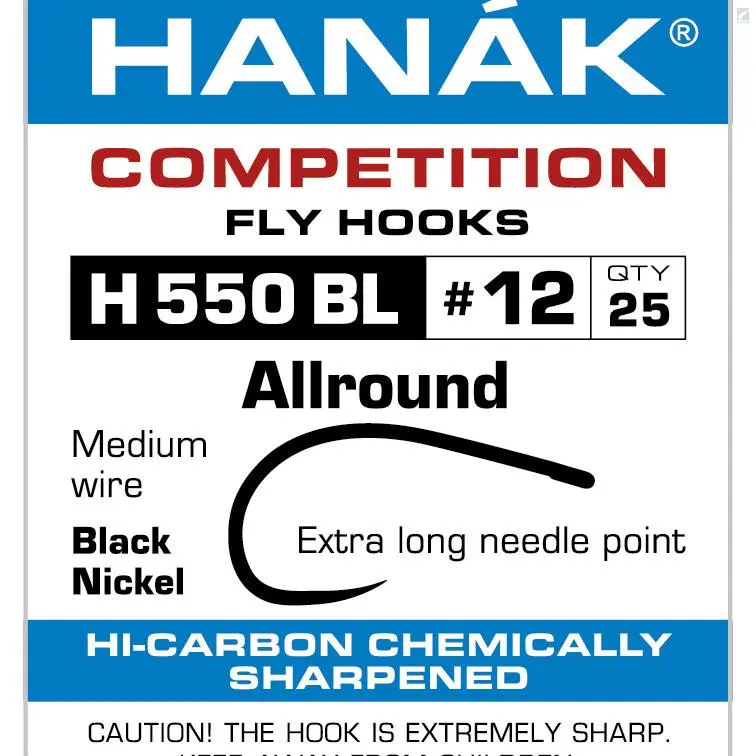 Hanak H550BL Allround Long is an universal hook with extended shank, extra wide gape and straight eye and bent-in point.