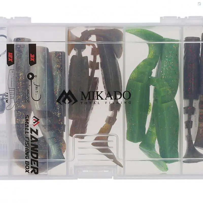 Mikado Small Set Zander Soft Lure Kit is ready to go set for zander fishing. Small jigs are also suitable for large perch and pike. Package includes 3 jig heads, 20 zander jigs and a lure box for storing them all. This kit makes starting fishing zander easy.
