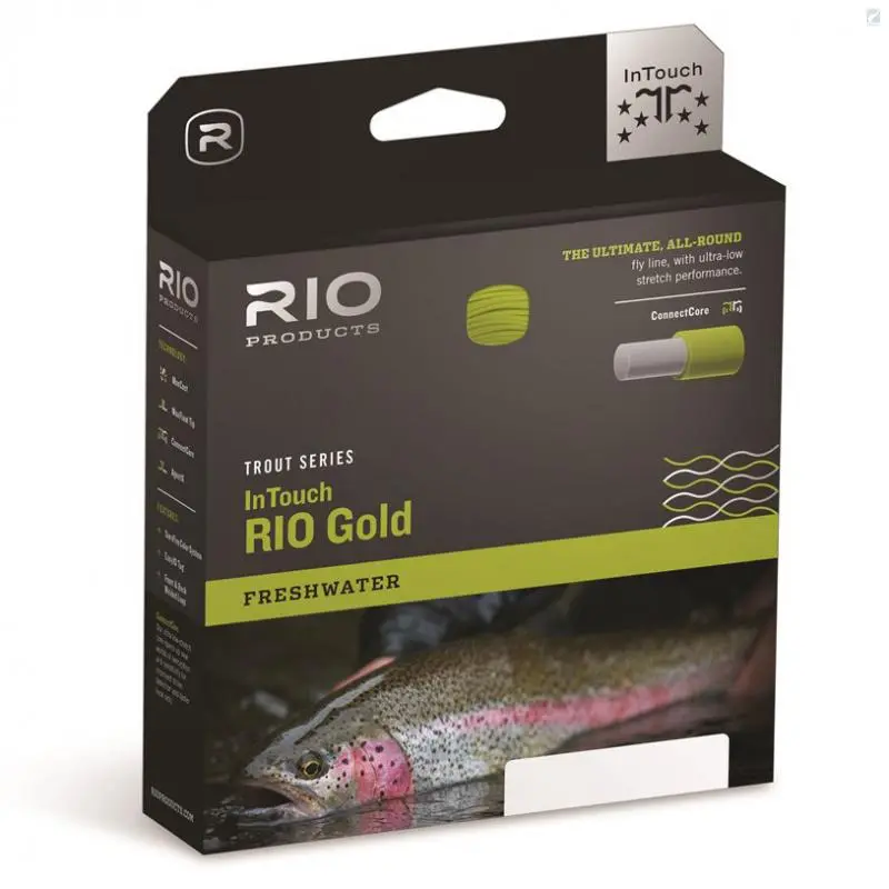 RIO InTouch Gold has a taper design that gives incredible loop stability at distance and a front taper that delivers perfect presentation of flies between sizes #2 and #22. The ultra-low stretch ConnectCore provides groundbreaking levels of sensitivity for intuitively better cast timing, easier line lift and sharp, precise mends. Lack of stretch also means enhanced detection of subtle takes and faster reaction time when setting the hook. The long head is ideal for the river fly fisher, and for controlling the fly at range.