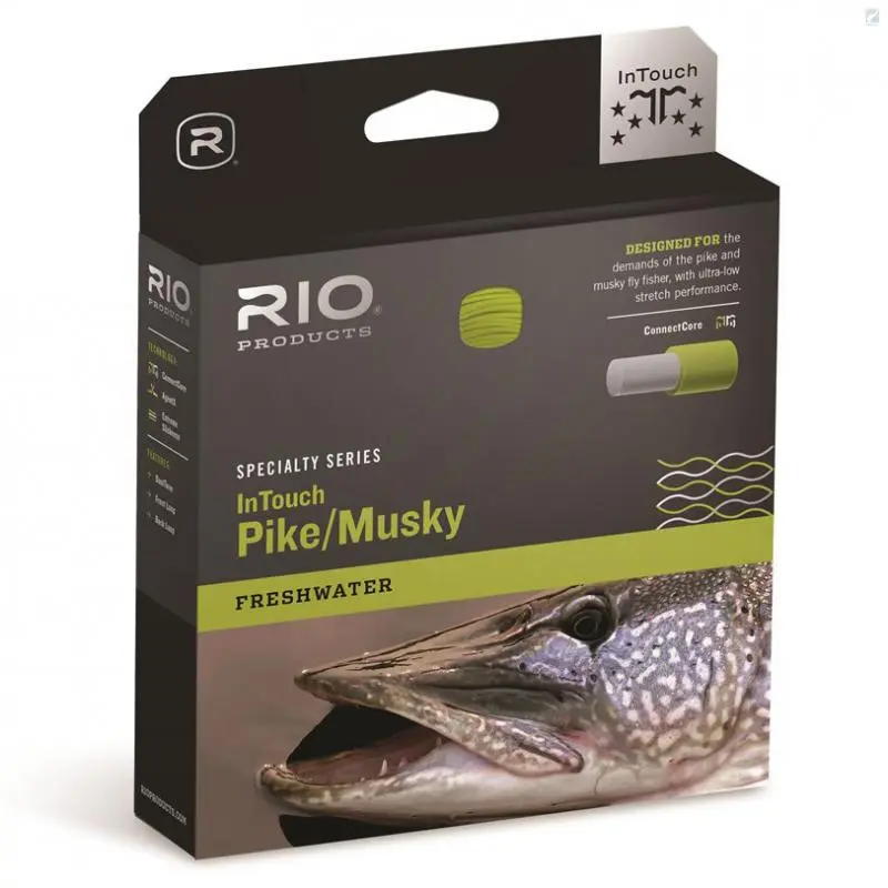 RIO’s Pike/Musky line has been specifically designed to meet the requirements of the modern pike and musky fly fisher. It features a short head and a powerful front taper that has no problem casting the biggest of streamers. The line is heavier than the industry standard to load powerful rods with ease, and is built with a supple, coldwater coating that features RIO’s XS and AgentX technologies for the very best in performance. A range of densities are available to cover a multitude of conditions. Built with ultra-low stretch ConnectCore Technology for the maximum in sensitivity, control and performance.