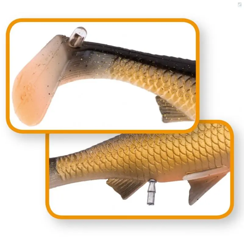 The perfect 3D Scan of a Roach! As a follow-up on the very successful line Thru roach, we have created this more slender river roach with a perfect T-style paddle tail. The lure will swim and kick even at slow speed, with a perfect nervous flanking action – irresistible for big pike! The lure has a Gat pellet slot and a tail rattle slot! The LB lure is perfected for use with corkscrew rigs and our new corkscrew release rig!