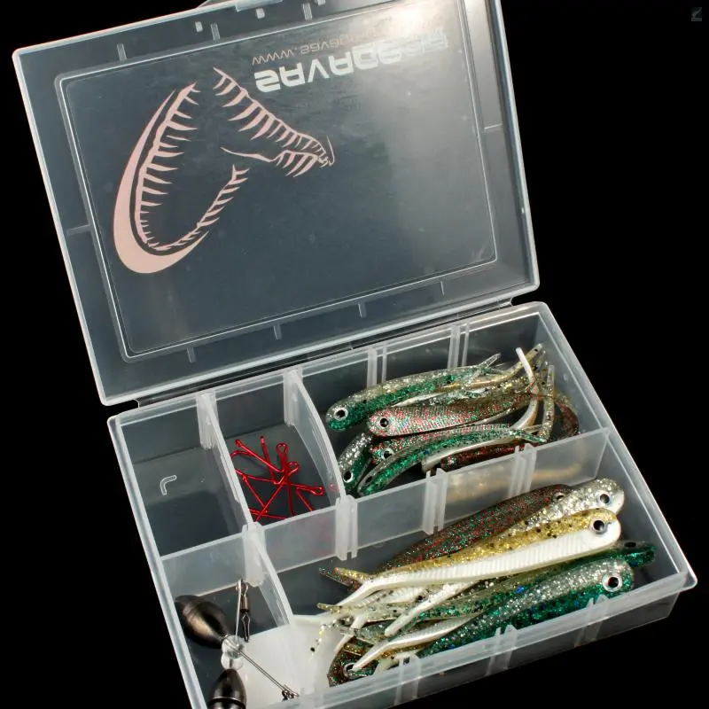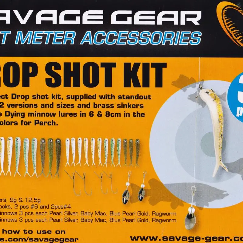Savage Gear Dying Minnow Drop Shot Pro Pack Kit innehåller krokarna, tyngderna och jiggarna som behövs i Drop shot fiskande. Med hjälp av kitten är det enkelt att börja fiska och den innehåller alla behövliga delar förutom linan.