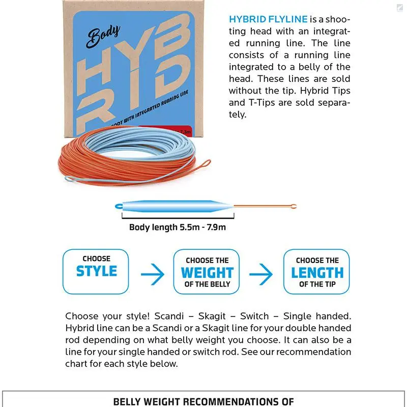 Belly weight recommendations of Hybrid lines for different styles (weight is for the belly without a tip):