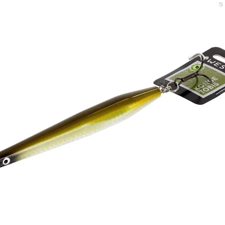 Westin Kongetobis – Kongetobis is a popular name for the biggest sand eels found along the Scandinavian coastline. This lure mimics their size and swimming pattern. When fished with a steady to fast retrieve the front part will break the surface giving you the exact and discrete swimming pattern of a sand eel skimming the surface for food. To make the lure do this the balance has to be just perfect – exactly what we managed to do with Kongetobisen. Good choice for coastal seatrout fishing.